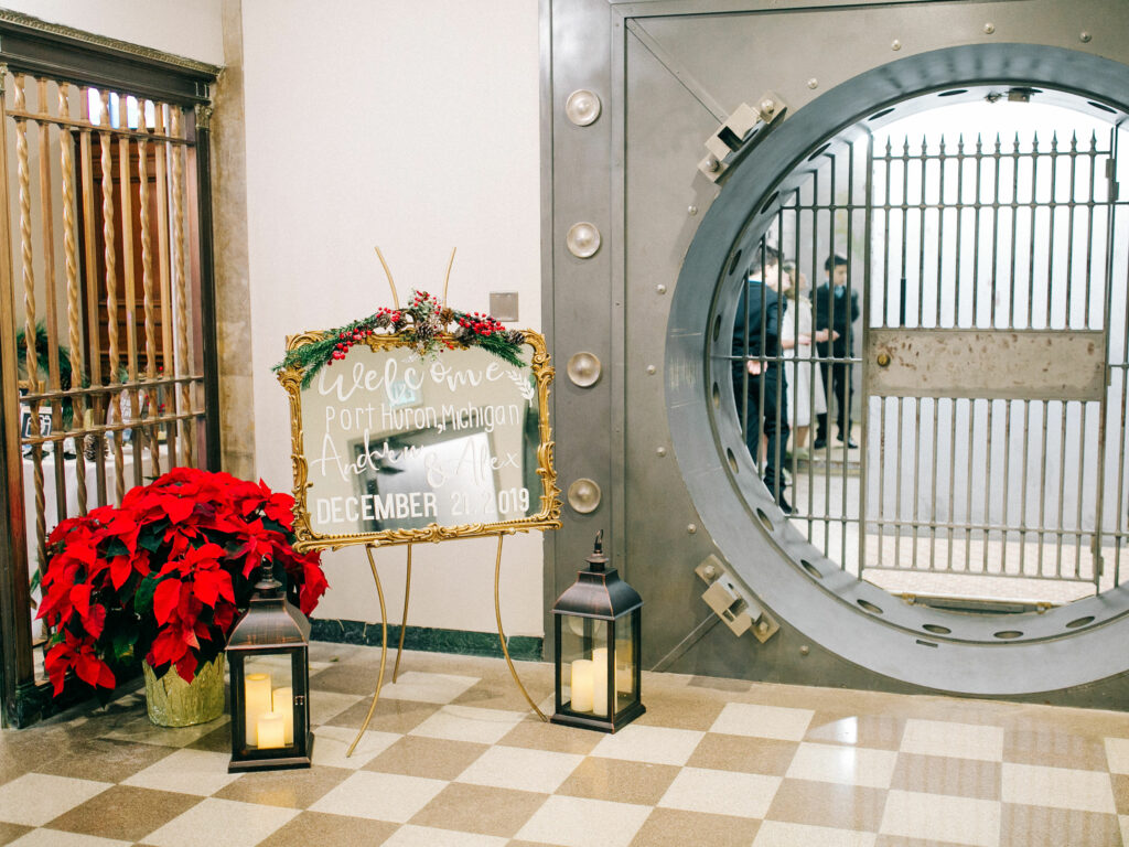 The Bank is a one‑of‑a‑kind historic wedding and private event venue nestled in the heart of downtown Port Huron, Michigan, overlooking the Black River. Originally built in 1927 as the Michigan National Bank, this stunning space blends rich historic architecture with refined modern style, creating an atmosphere that feels both luxurious and inviting.